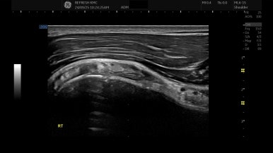 진단은 회전근개의 저항검사, 회전근개 근육의 가동범위 검사 등 이학적 검사를 정상측과 비교하여 확인하는 것으로도 충분합니다만, 좀 더 장애의 정도를 확인하기 위해서 초음파 검사를 진행합니다.