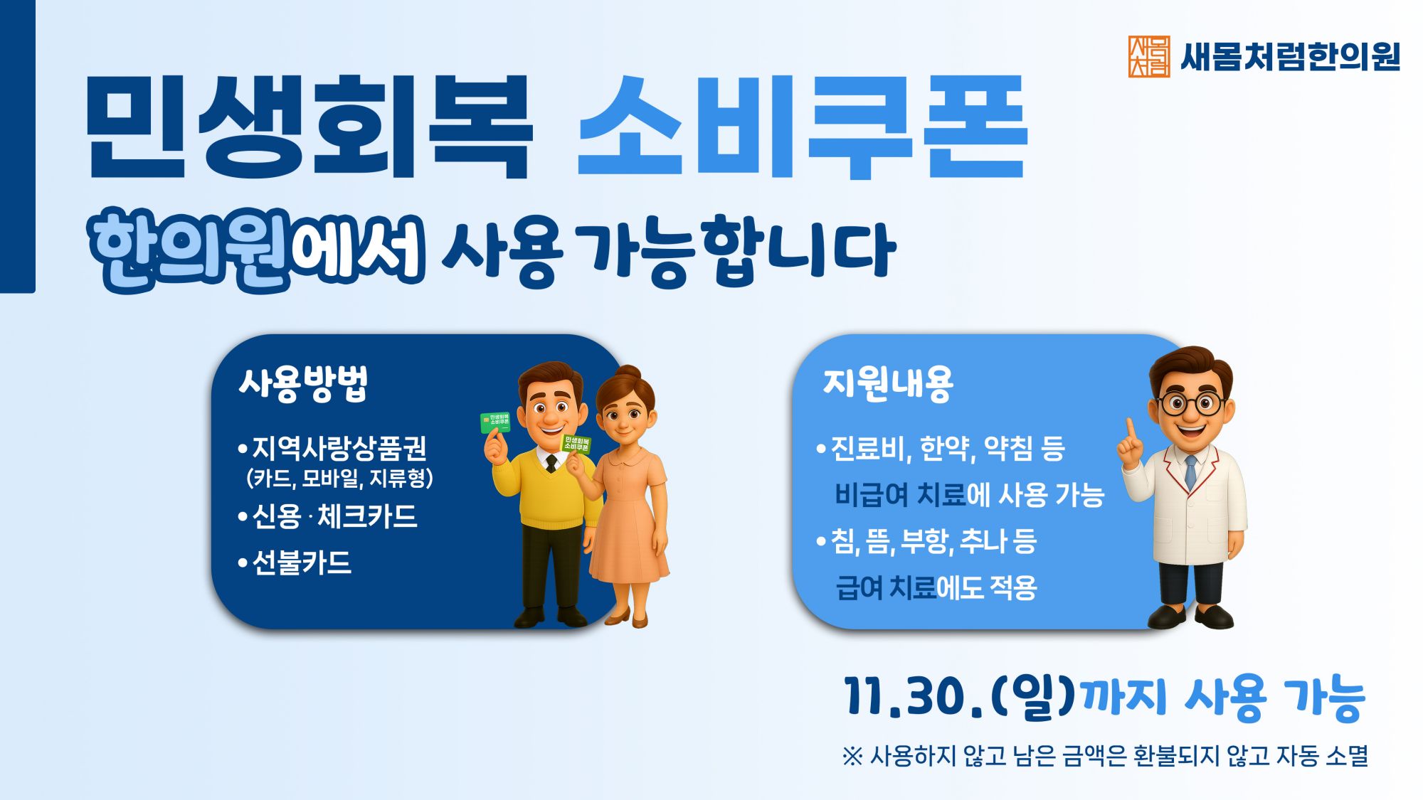 새몸처럼한의원에서 민생회복 지원금 결제 가능합니다!